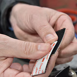3M Dual Lock MP3541/42 black hook & loop tape comes in a 1 in width, 5 yd length, uses a rubber adhesive and is packaged 1 pack per inner, 5 per case. These products are generally considered "hook & loop" products. While the traditional system is that of a hook and a loop, some of these products also use an interlocking mushroom like head. This particular 3M item is the mushroom hook side with a density of 400 stems/in. This is an adhesive based hook & loop tape.